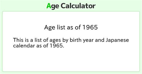 1965 Age Today. Web june 25, 2020 — the u.s. If you were born on 1/1/1965 how old are you?