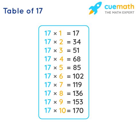 17 Times Table Multiplication Table of 17 Read Seventeen Times Table