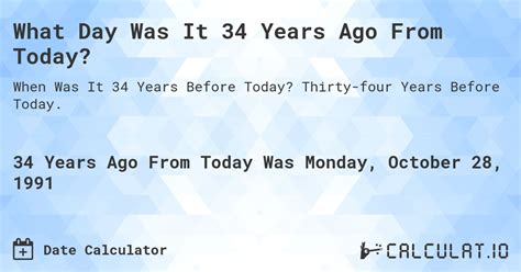 34 Years Ago. Monday, february 20, 1989 was 34 years from monday, february. Web what was the date 34 years ago from today?