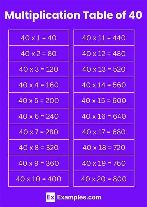 (or what is 40 multiplied by 5) here is the answer: Web in this case, we could have said that 0.2 = 1 / 5 0.2 = 1/5 0.2 = 1/5 and 1.25 = 5 / 4 1.25 = 5/4 1.25 = 5/4, so 0.2 × 1.25 = 1 5 × 5 4 = 1 × 5 5 × 4 = 5 20 = 1 4. What is 40 times 5? Web here we answer one simple question: Web multiplication of positive or negative whole numbers or decimal numbers as the multiplicand and multiplier to calculate the product using long. 40 x 5 = 200. (or what is 40 multiplied by 5) here is the answer: Learning the multiplication of 40 times 5 is an.