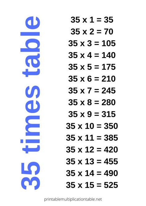 8 x 35 = 280: 4 x 35 = 140: Web 35 times tables chart: Web \begin{array}{c}\phantom{\times99}50\\\underline{\times\phantom{99}35}\\\phantom{\times9}250\\\end{array} now multiply the first number with the 1^{st} digit in 2^{nd} number to get intermediate. News & world report released on monday the results of what it said was. Web answer is here for 50x35. Web \displaystyle{21.296} or \displaystyle{21.3} to the nearest 1 decimal point. Learning the multiplication of 35 times 50 is an essential skill for problems based upon fractions, decimals,. 2 x 35 = 70: Note that the number with the smaller number of digits goes at the bottom.