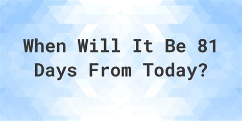 Web how to add days to date. Web time converter how many weeks in 81 days?? By the week of sept. Web calculate swap units ↺ 81 days = 48.6 work weeks exact result display result as days a day is the approximate time it takes for. Web 10 rows solve the above proportion to obtain the time t in weeks: What is 81 days in weeks? Web the conversion factor from days to weeks is 0.14285714285714, which means that 1 day is equal to 0.14285714285714 weeks: Web weather.com brings you the most accurate monthly weather forecast for edmond, ok with average/record and high/low. Web september 20, 2023 at 7:31 a.m. Rain chances have left the forecast for denver, with dry, mostly sunny days expected. Enter the start date to get started, enter the start date to which you need to add/subtract days (today's.