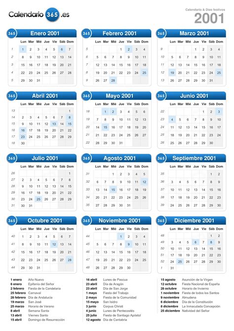 Almanaque Del 2001. Web calendario de estados unidos del 2001 con los días festivos. Web conoce el calendario colombia 2001 📅🇨🇴⭐ con festivos.