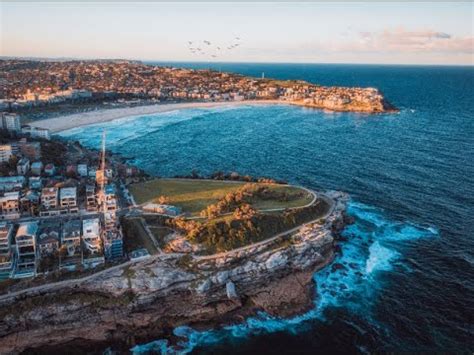 Drone shot of sunset at Bondi Bay, Mackenzies Point Free Stock Photo