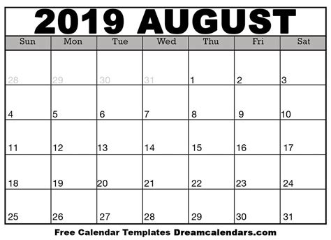 Download Printable August 2019 Calendars
