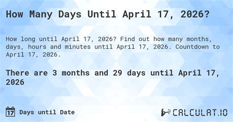 How many days until 17 April Calendarr