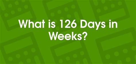How Long Is 126 Weeks. 126 days equals 18 weeks amount from to conversion formula the conversion factor. Web 126 weeks to years: