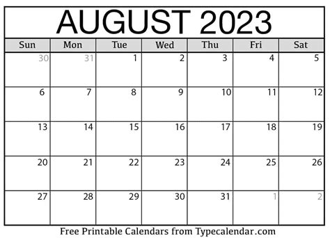 August 2023 My Calendar