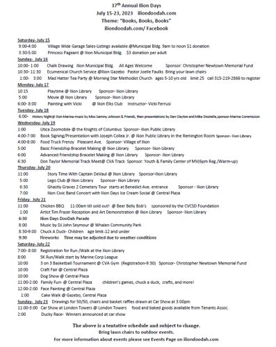 Ilion Days Schedule