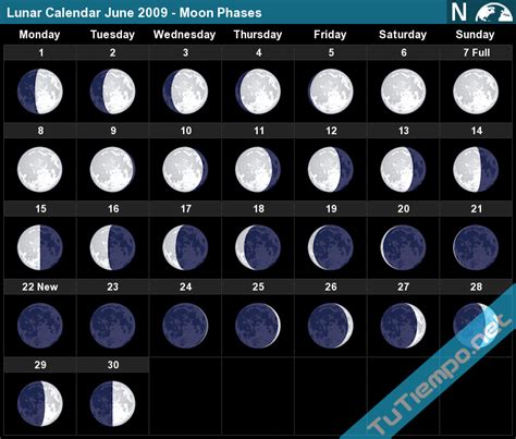 Lunar Calendar June 2009 Moon Phases