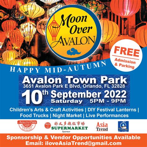 Kids' arts and crafts, homemade festival lanterns, food trucks, a night market, and live performances are all available. Invite a friend add to calendar. Kids' arts and crafts, homemade festival lanterns, food trucks, a night market, and live performances are all available. Learn more about the date and times of the event now. 3680 avalon park e blvd, orlando, fl, map. Web sat sep 23, 2023. Community, cultural, family, food, food truck, mid autumn festival.