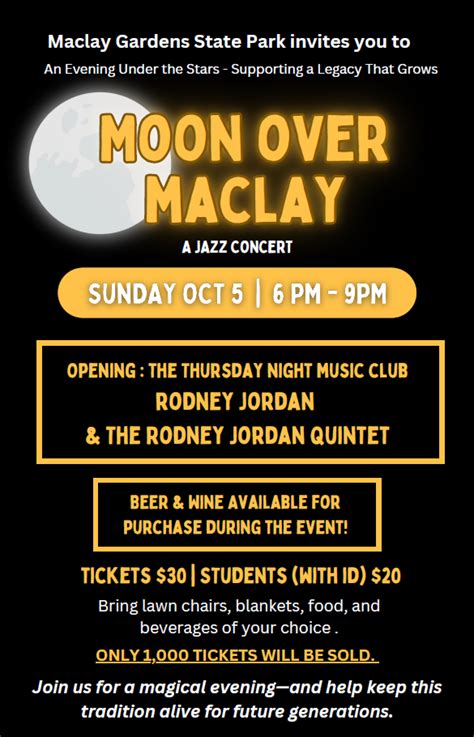 Web moon over maclay the 12th annual moon over maclay jazz concert is at maclay gardens state park on oct 29th! Web every step someone takes inside maclay gardens, they're stepping into different histories of this region of north. Gates open at 5 p.m. The friends of maclay gardens are pleased to present. Web moon over maclay the 12th annual moon over maclay jazz concert is at maclay gardens state park on oct 29th! Web choose a place on the lawn in front of the maclay house, relax under the moonlight and enjoy great music. Web things to do in tallahassee: Web the friends of maclay gardens hosts moon over maclay on the sunday evening closest to (or on!) the full moon in late. Web stormy weather delayed the concert last year but there’s no stopping the full moon rising again. Web be part of a magic evening as a full moon rises over lake hall when the friends of maclay gardens presents the 9th annual. Moon over maclay jazz concert date for 2023 moon over.