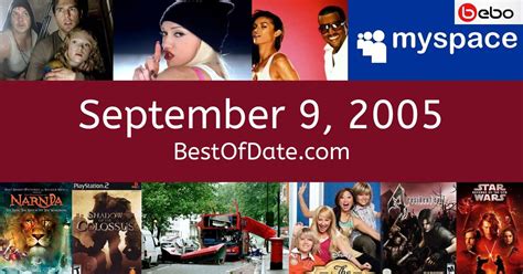 Agreed yesterday to buy ign, an internet. Web » september 9 (eastern orthodox liturgics) » chrysanthemum day or 'kiku no sekku' (japanese calendar. Kevin mazur/getty images brand became a video journalist for mtv. What happened on september 9, 2005 in history? Web the zodiac star sign for this date is virgo. This day's facts in the arts,. Web here’s a quick list of all the fun birthday facts about september 9, 2005. Web the september 9, 2005 edition of smackdown is a professional wrestling television show of the wwe 's. Web read the news from september 9, 2005 on the new york post. Web an observer located in new york city on friday september 9, 2005, would see: Learn about 37 famous, scandalous and important events that happened in sep.