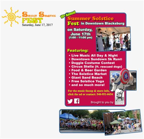 Summer Solstice Blacksburg. Th circus stella, a traditional family circus which features performing rescued. Web the 15th annual summer solstice fest returns to downtown blacksburg on saturday, june 17, from 1 to.