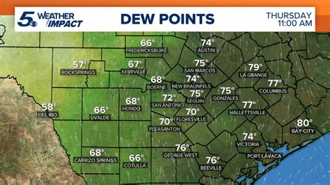 Texas Dew Point Map. Weather map with the current dew point for texas. Current weather maps extended surface weather.