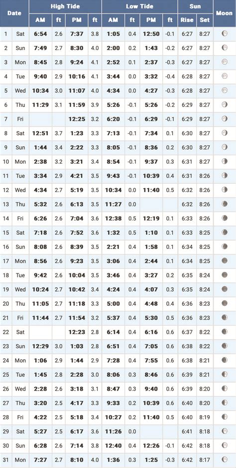 July Tide Chart Coastal Angler & The Angler Magazine